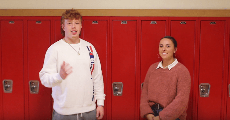 A couple softball players discuss their upcoming game with Chrisman.