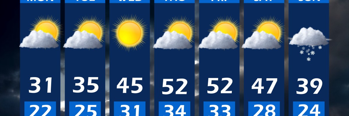 Passing clouds, highs in the high-mid 40d, lows in the upper 20s.